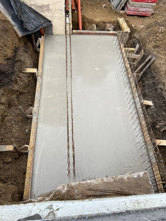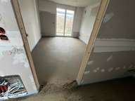 Endlich ist es so weit: Der Estrich wird eingebaut.