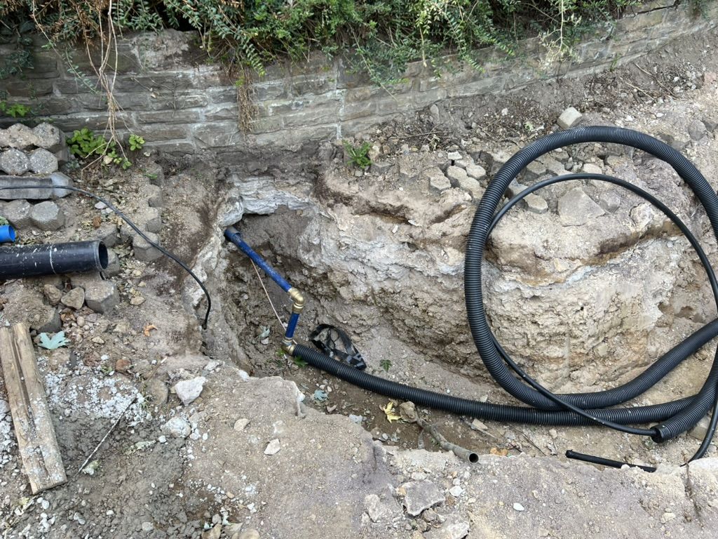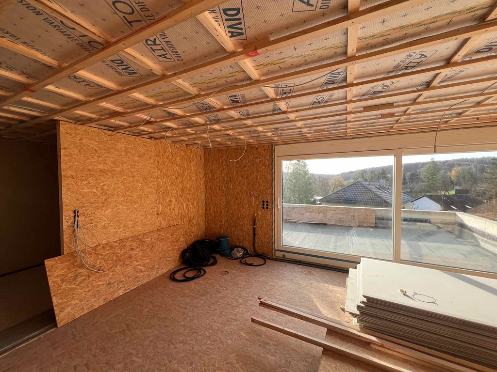 Hier wird nachher niemand mehr kalte Füße bekommen. Mit der neuen Fußbodenheizung haben wir eine effiziente und komfortable Wärmeversorgung. Die Wärmepumpe wird mit einer Solaranlage kombiniert, um die Energieversorgung der Wohnung nachhaltig zu gestalten.